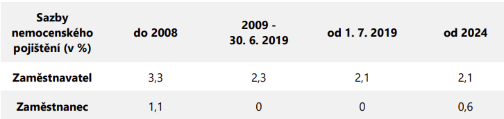 Níže uvádíme vývoj sazeb nemocenského pojištění: